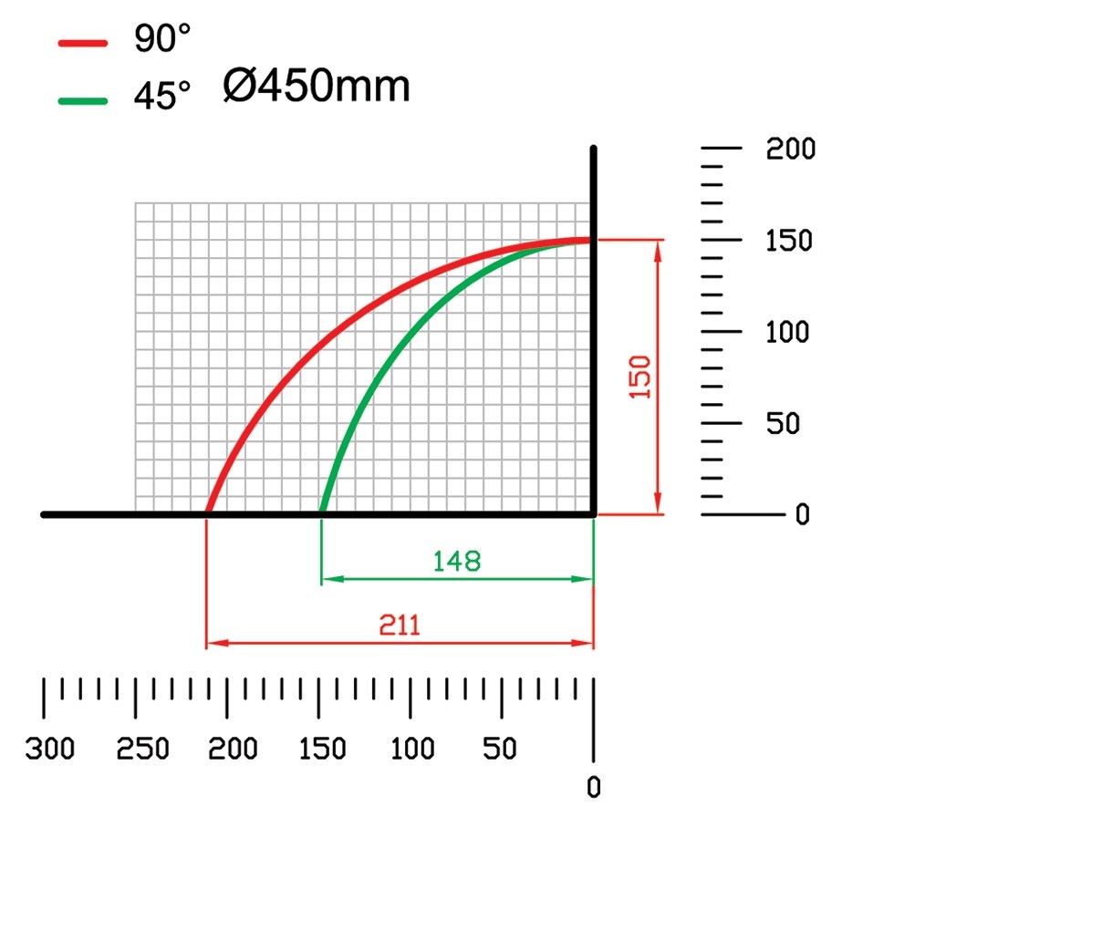 from 90 degree to 20 degree RH and LH 20 degree side with the possibility